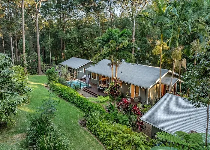 Verrierdale Retreat - Noosa Hinterland Hideaway, özel yüzme havuzu ve donanımlı mini mutfak ile konaklama olanağı sunar.
